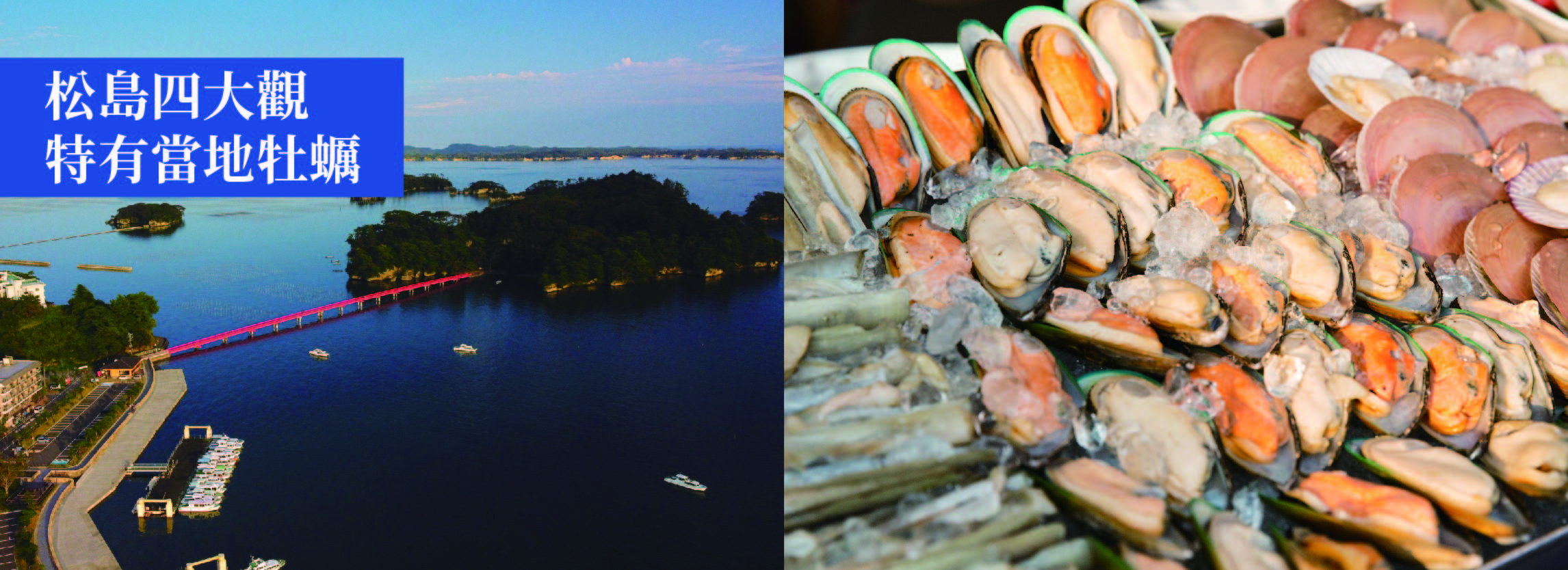 特別安排搭乘松島灣遊覽船,穿行於擁有約 260個大小島嶼上有天然黑松的松島灣內,船內介紹著水面上島嶼奇特的形狀和昆布、牡蠣養殖場,日本三大名景之一【松島】。