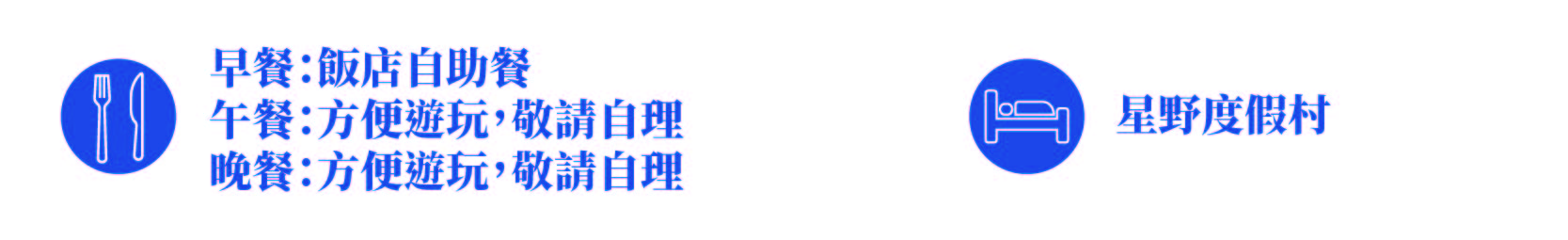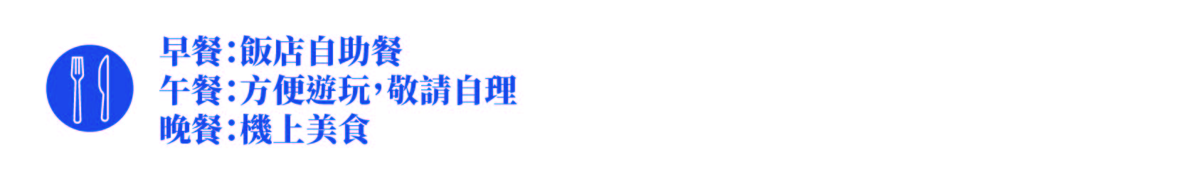 行程說明 :本行程屬於個別旅遊方式成行,當地行程活動及接送皆採取合車合船操作,行程餐食活動將視當地天候與行程預定安排做前後調整。