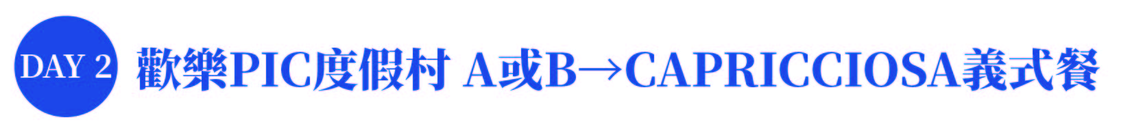B) PIC樂園(1400至2100)馬戲團秀/PIC自助晚餐/CAPRICCIOSA義式午餐