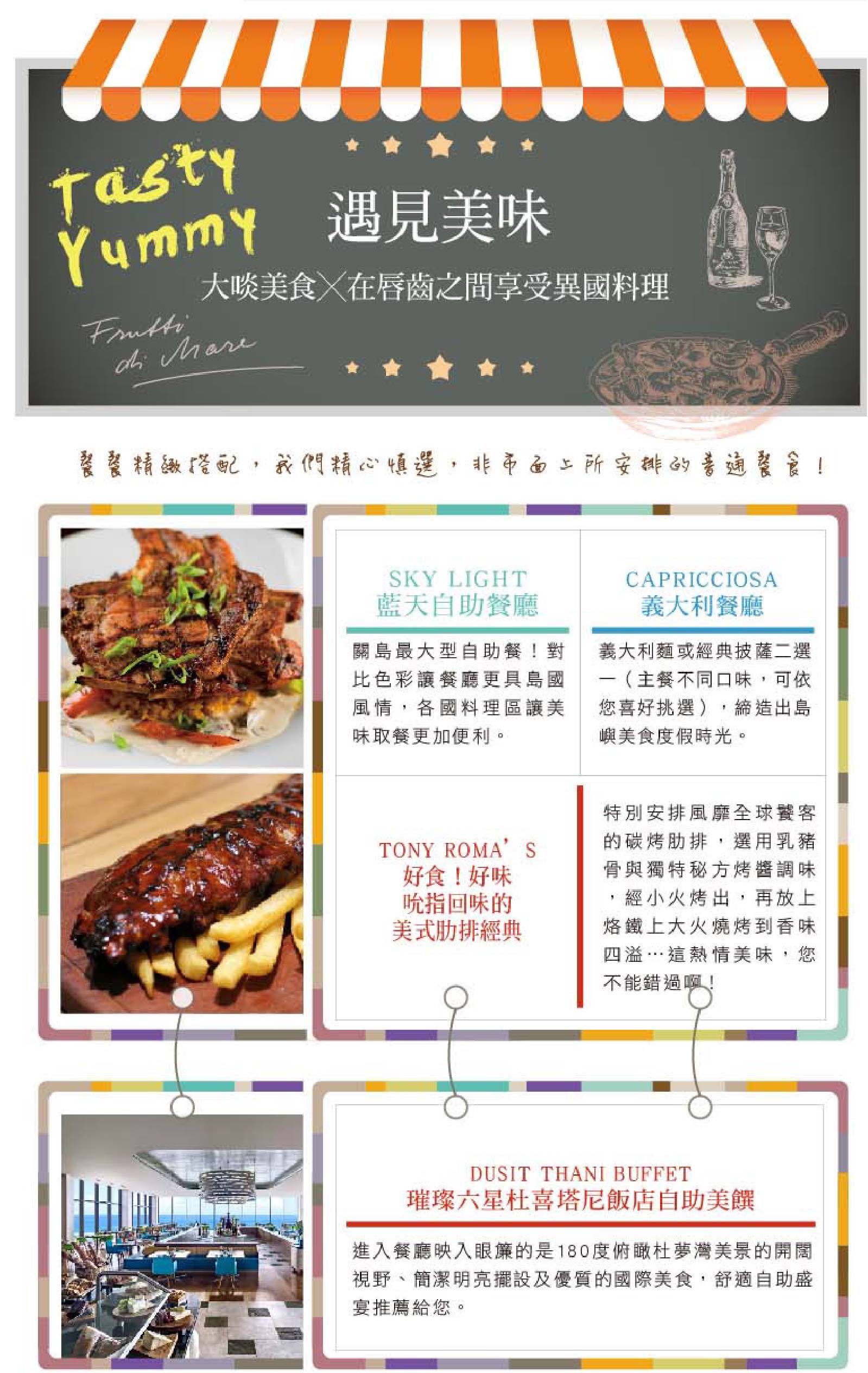 餐食說明 :關島少數三、四星級飯店內早餐為套餐形式(非自助式)。